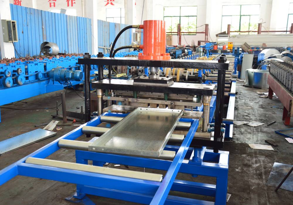5 тонн Электрический разматыватель——→ Сервоподача—→ Гидравлическая пробивка—→Машина для формовки основного рулона—→Гидравлическая резка—Конвейерная лента—Изгиб с одной стороны—Изгиб с двух сторон—→ Выходные столы